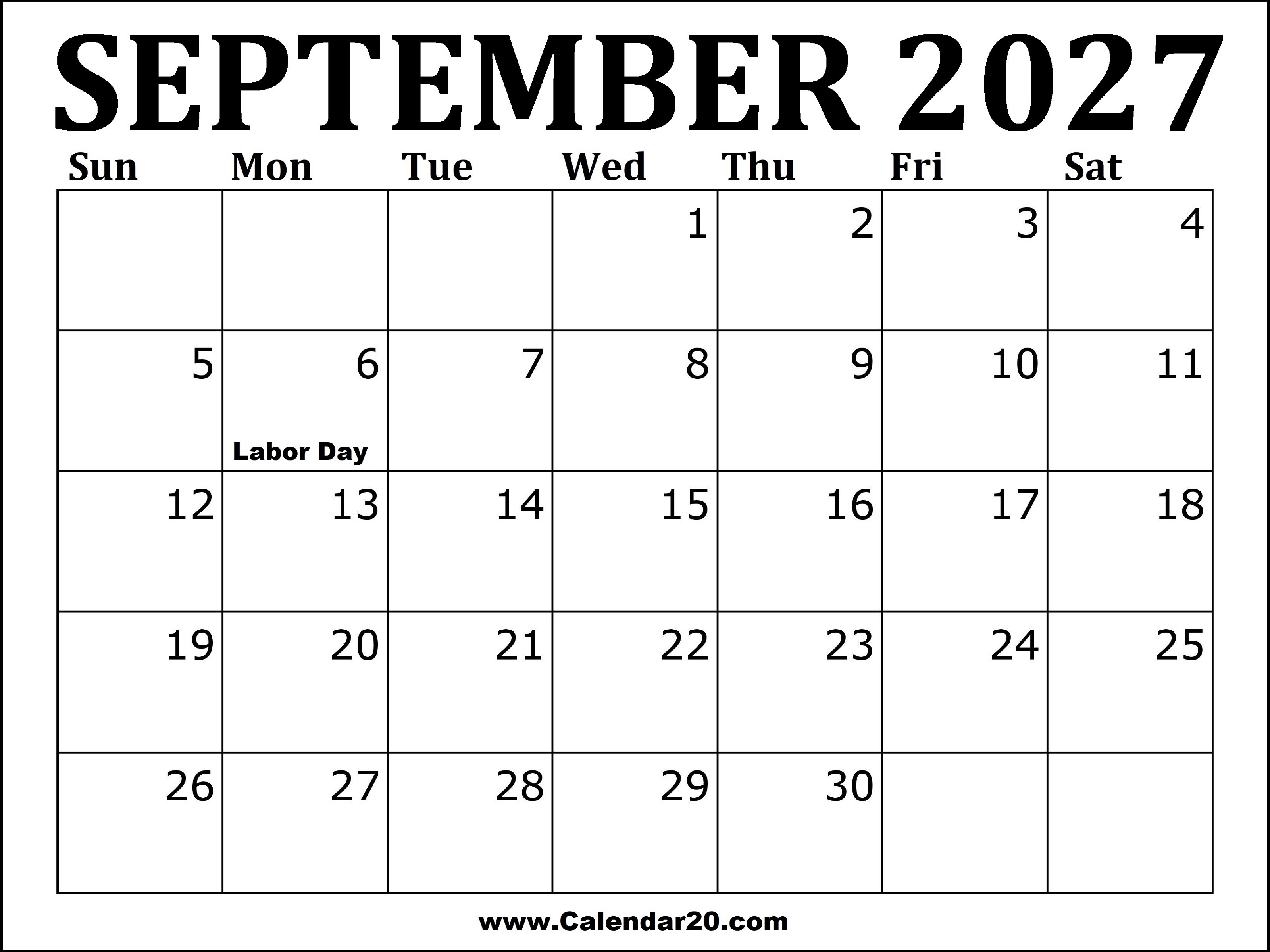 September 2027 Calendar Printable
